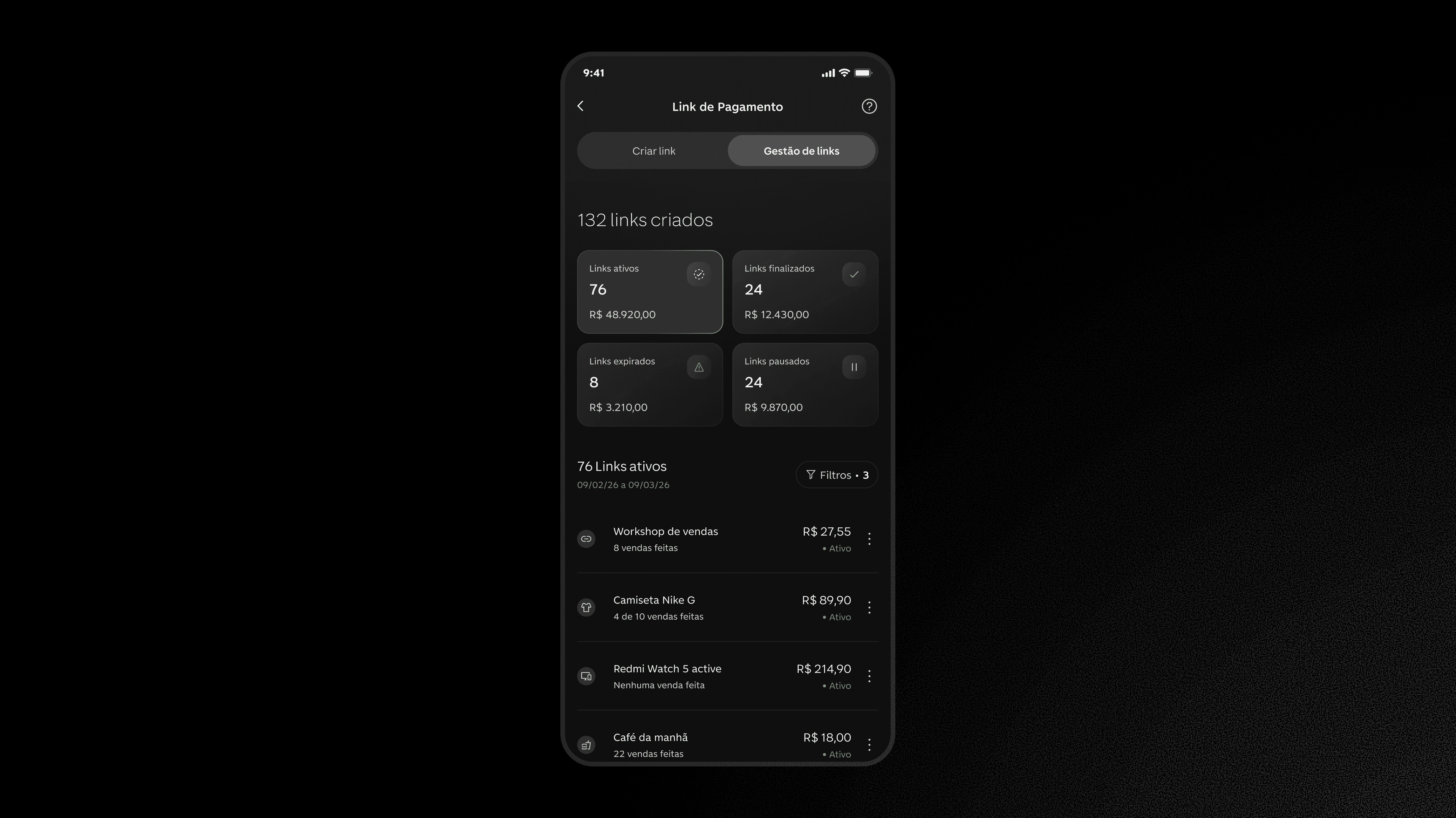 Gestão de links de pagamento